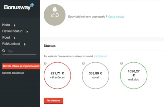 Endal oli ka uskumatu vaadata, et ma selliste paarisotiste sutsakatega olen juba üle tuhande euri niisama rahhi saanud Bonusway käest. Hetkel saaksin kohe välja võtta pea 300 ja ootel on veel 353€, mis tähendab seda, et need poed pole veel saidile lihtsalt oma raha kandnud, aga eks ta mingi hetk sinna väljavõetava kausta tiksub ka. Raha on mulle üldiselt tulnud nädala jooksul.