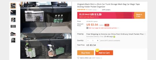 Aga tagasi Ali juurde – sain ühelt lugejalt hunniku linke, mida autosse soetada ja kuna mul nendega just kiire pole, siis vat tellingi Alist. Aga mitte kohe täna, vaid 11.11, sest neil on siis suured aled, mingisugune Singles Day ja 24.11 on siis vana hea Black Friday. Kuna ma juba ali lehel nägin, et minu soovitud kraam 11dal odavam on, siis noh, why not, ootan ostuga paar päeva. Eesti aja järgi saan juba 10dal kell kolm nende soodukatega ära tellida. Mida ma siis tellin? No näiteks: