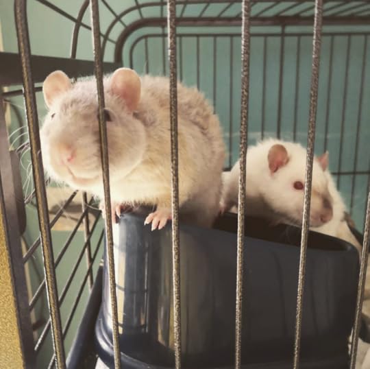 Need rotid pole küll ühest pesakonnast, sest no ilmselgelt on nad ka eri tõugu, aga koos nad seal loomapoes elasid ja pojana koos siia ka elama tulid. Kuna alguses nad ei kakelnud, siis tundus, et polegi probleemi. Aga näed, ma ei tea, mis on viimasel ajal juhtunud, aga see on lihtsalt päris kurb. Pidevalt kuulen, kuidas valge rott piiksub ja siis ma pean neid seal lahutama minema. Vello alati on käsipidi teise kõril, ise sellise näoga et so what, mul tuli siin veits kõriisu peale. Valge on ka selja pealt puhta kärna näritud, no pole väga viisakas ju.