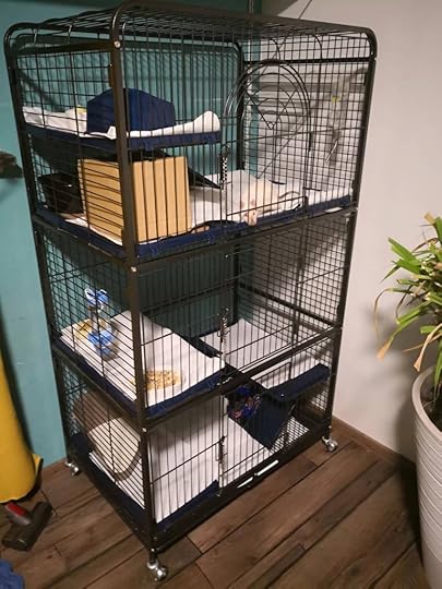Ühel ööl passisin siin üleval, käisin sada korda rottidega pragamas, kuni mulle aitas. Käratasin Kardo appi ja hakkasime nende majas ümberkorraldusi tegema. Ma olen vist näidanud, et neil on üüratu puur, nüüd on see kaheks tehtud. Valge rott sai ülakorruse ja Vello alumise. Ma nüüd ei ole kindel, kas see korraldus neile meeldib või mitte, sest rott on ikka üsna seltskondlik loom, aga nädala lasen neil nii elada. Karistuseks. Eks siis näis, kas saab kokku tagasi lasta.
