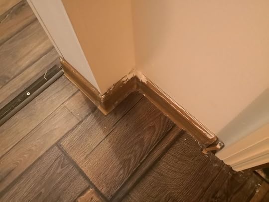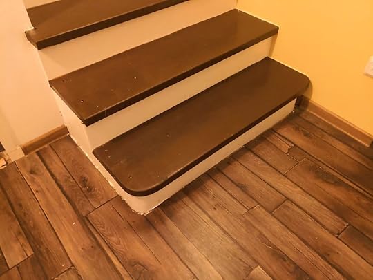 Väikse esiku plaadid jäid ka üsna värviseks peale nende lahkumist, aga ma lihtsalt…. ei viitsinud enam nendega suhelda. Trepi ümber pole mingit liistu. Jah, enne ka polnud, aga ma arvasin, et see kuulub remondi juurde, et kõik viimistletakse ära. Eksisin, mis muud.