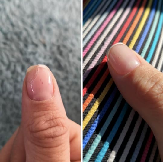 Libedakoolitus edukalt sooritatud, ühe suure miinusega. Ma suutsin enda käe vastu autoust nii lüüa, et lõin küünest tüki välja. Mul pole kunagi enne küüs nii katki läinud, eks nad mul lühikesed ka, aga mul polnud ka normaalne niimoodi edasi elada, sellise käega, sest me ju homme Tartusse. Õnneks ma sain oma küünetehniku juurde kiirelt aja ja ta tegi mul selle korda.