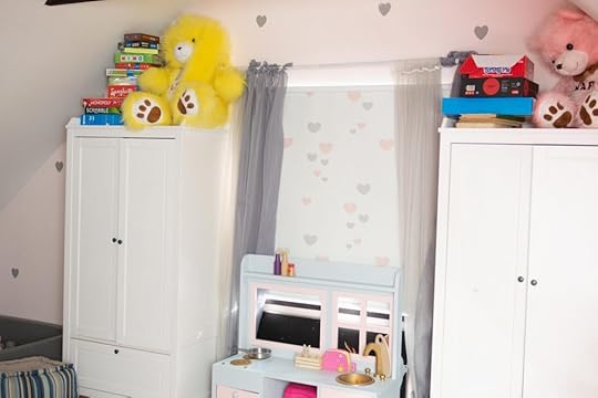 Siis aga kirjutas mulle ettevõte nimega Print Decor, kes tegelikult rohkem keskenduvad lastetubadele ja erinevate piltidega ruloodele, mis lapsi rõõmustada võiksid. Tjah, ega meil lastetoas oli ka ainult õhukene kardin, aga kuna seal ju ometi kellelgi magada ei kõlba, siis seal ei olnud ruloo ammugi hädavajalik. Igatahes läks nii, et saime Print Decorilt kingituseks kahed rulood. Nii lastetuppa kui ka meie magamistuppa. Valida oleksime võinud midagi nende disaineri tootevalikust, aga kuna nad pakuvad ka võimalust ise täpselt näidata, millist mustrit sa soovid, siis kasutasime me seda ära. Lastetuppa tuli hallide ja roosade südametega valge ruloo, mis sobib kenasti seinaga.