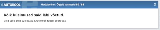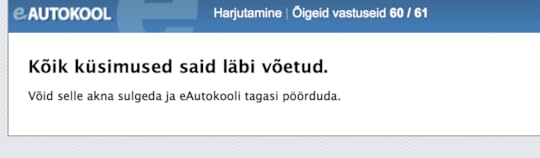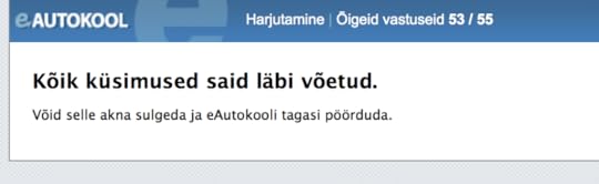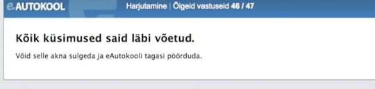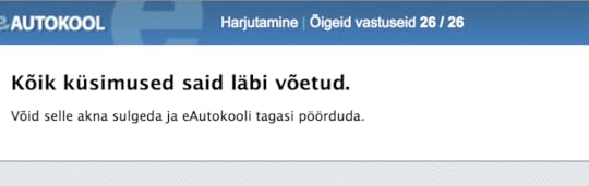 Muidugi eelnes nendele testidele kümneid mitte nii häid teste, aga lõpuks hakkas sujuma küll. Täna hommikul tegin vahelduseks liiklustestide äpis neid ARK teooriaeksami küsimusi, aga seal veel nii hästi läinud ei ole ja parim tulemus on 2 viga 30st. Ma ei tea, kas see on piisav läbi saamiseks?