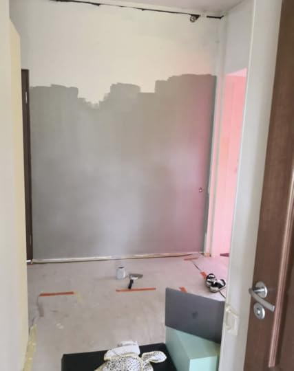 Igatahes on nende testidega nii (vähemalt mul), et ei saa jutti õppida, on vaja pause teha. Seega tegin ma pausi ja otsustasin ühe peegli kollaseks värvida. Ja kuna mul oli ju parasjagu paus, siis mõtlesin vaadata, kuidas oleks, kui üks esikusein hall oleks. Sõbranna soovitas, et kui 1×1 meeter ära värvida, siis saab aru. Ma vist läksin natsa hoogu, aga mulle tundub, et kollasega sobib küll kokku. Nüüd jääb üle ainult mõelda, et mis teiste seintega teha, et mis valge ja mis kollane ja mis hall.