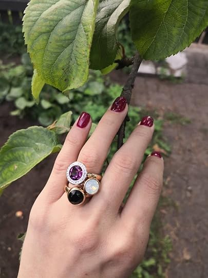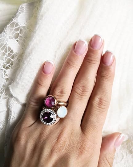 Uskumatu, et minust on saanud sõrmustefänn, ma ju tegelikult rääkisin ka sellest SIIN. Reaalselt ma kannan oma sõrmuseid nii tihti, kui nad mulle sõrme lähevad. Rasedarõõmud – mõni päev on näpud vähe paistes ja ei saa miskit sinna panna. Teine päev on jälle olukord parem ja saab jälle ehteid kanda ja komplimente koguda. Iga jumala kord on keegi mulle öelnud, et oo, sul nii äge sõrmus. Siis ma seletan, et see on tegelikult kolm sõrmust ja et ma saan neid kive seal peal vahetada ja endale uue sõrmuse niiöelda kokku kruttida. Samu kive saab kasutada ka kaelakeel ja käevõrul, neid mul ei ole. Kõrvarõngastel saab ka ja need mul on, aga paraku ei sobi need mu kõrvale (kõrvalest on liiga… suur) ja nõnda saan mina kanda vaid sõrmuseid. Pole hullu, mulle piisab hetkel nendest ka.