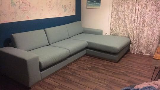 Ostsin koju uue diivani. Vana oli 310 cm lai, uus pidi olema 330 cm. Mõtlesin, et okei, vb on jah natukene suur, aga pole hullu. Ongi hea kõigil laiutada, eksole. Toodi diivan kohale, Andre isegi sõitis oma isadepäeva ajast meile, et aidata diivan sisse tassida ja kokkugi panna. Kerli saatis pildid ka, et milline siis välja näeb. Vaatan mina pilte ja mõtlen, et kuidagi naljakas, et vana diivan, 310cm laiusega on selline: