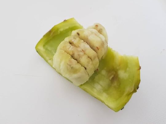 Näitan, kuidas avatakse ka. Sees on tugevamad kivid, aga maitse poolest niiiii hea. Nagu banaani ja tikri ja kurgi segu :D