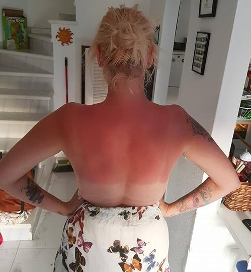 Käisime ookeanil ja rannas ja kuidagi päike kogu aeg paistis selja tagant, läbi pilve. Mulle ei tundunud, et see põletada võiks, aga näete. Nii läks. Hullult kartsin, et nüüd koorub selg kogu täiega selgrooni maha, aga ei. Esiteks – ÄRGE PANGE PÕLETUSELE HAPUKOORT! Välismaal on lihtne – polegi hapukoort, aga see on mingi vana müüt, mis tegelikult teeb su põletuse veel hullemaks. Mis aitab? Mina panin ühe kihi burnshieldi ja siis niisutasin õhtu otsa Linea aftersuniga, hommikuks oli seis selline: