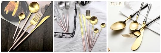Tahtsin veel teha postituse, et mida ma jõuludeks tahan, aga sellega läks nii, et ma unustasin ära. Reaalselt mul oli mingi 2-3 asja küll peas valmis mõeldud, aga no ei suuda ma neid kuidagi meelde tuletada. See vist ongi näide, et polegi midagi vaja. Selles suhtes, et kui midagi vaja on, siis ma ostan ju ise ja tahan need ise valida. No näiteks on mul uueks aastaks vaja märkmikku, aga ma tahaks midagi ägedat. Eks ma saaks hakkama igasugusega, kui ka keegi lambist kingiks, aga no ise valida oleks ikka parem. Peakski netis veits surfama (võite soovitada ka). Siis tahaksin ma teha nii, et vahetan oma kööginõud kõik ühe suure ja korraliku komplekti vastu. Et olekski mingi hunnik asju, mis kõik sobivad kokku ja on ilusad ja ühesugused. Mitte mingi 2 taldrikut siit komplektist, viis teisest, üks kolmandast, nagu mul on. Ja tassid peavad olema suured! Ja nugade-kahvlite komplekti tahaks ka. Näiteks selliseid, aga ma ei tea, kust selliseid saada, sest need pildid ma leidsin Alist, aga noh, äkki on kuskil Eestis ka müügil ilusaid. Mul on mingi needus, et teelusikad lihtsalt kaovad kuskile. Igatahes, kui teate soovitada, siis soovitage heaga.