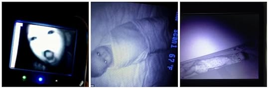 Näide 3: Lende, kui ta üleval on ja teda videopildiga beebimonitorist vaadata. Mul endal kahjuks pole olnud mahti pilti teha, aga no see on umbes selline “kaunis” vaatepilt, mida vaadates võiks eeldada, et tite järgmine liigutus on ämbliku kombel mööda seina üles roomata, nagu ühes õiges õudukas kohane.