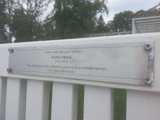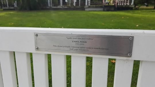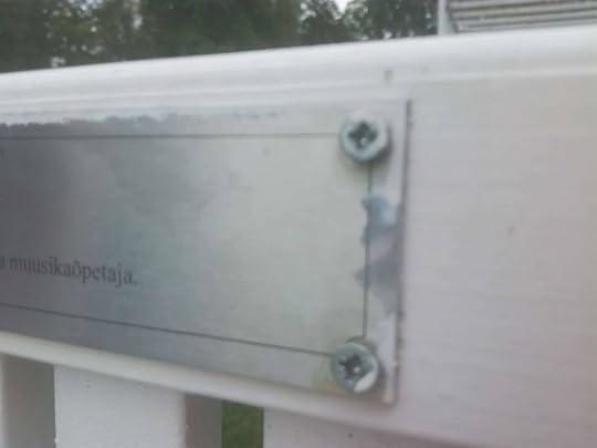 Ühesõnaga ta siis läkski augusti jooksul sinna ja leidis pingi õigelt kohalt. Aga millisena? Noh, ju siis oli papa pinki kuskil üle värvitud, ilma, et oleks viitsitud seda plaati küljest ära võtta. Siis aga mõeldud, et ah, mis me seda ikka tassime, kruvime parem ainult selle plaadi kohaloleva pingi külge. Nii tehtigi. Samal ajal, kui teised pingid on ilusasti korrektselt värvitud, on papa pingi mälestusplaat värvine, kriimustatud ja takkatipuks pole keegi viitsinud isegi kruvisid lõpuni sisse kruvida.
