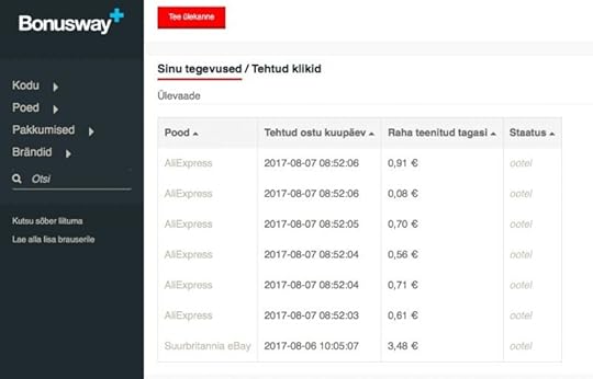 Hetkel pole seal nimekirjas veel väga palju poode, aga kuna Bonusway on üle maailma tuntud firma, siis küllap ajapikku ka poed sinna listi jõuavad. Aga kuna ma lihtsalt mäletan, et mu lugejate hulgas on hunnik inimesi, kes armastavad ka e-bayst ja Alist tellida, siis need poed on seal täitsa olemas ja saate rahumeeli iga ostu pealt raha tagasi teenida. Lisaks on nendega ühinenud ka booking.com neile, kellele meeldib reisida ja ringi rännata.