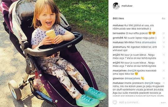 Ja kui näiteks see, et mu peaaegu kolmene ikka veel jalutusvankrit kasutab, teeb mind ka laisaks emaks, siis okei. Tavai. Ma võin olla laisk ema. Ma isegi muuseas ei taibanud sellele ise mõeldagi, kui keegi mulle Instasse kommentaari jättis, et appi, nii suur laps ja IKKA vankris? Ma vist magasin selle memo presindilt maha, kus oli kirjas see vanus, mille kukkumisel tuleb vanker põlema panema ja laps peab omal jalal olema, vastasel juhul on tegu laisa vanemaga.
