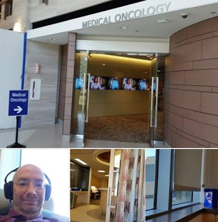 A handful of things about my diagnosis have emerged as "lucky," and one of those is that it came just as Johns Hopkins was about to open a branch of its cancer center at Sibley Memorial Hospital, much closer to my home in Washington, D.C. The photos here are from my first visit to the new facility, with its private infusion rooms. This was the second and final infusion of Round 2 of chemotherapy -- a round is two visits in three weeks (infuse, infuse, rest).