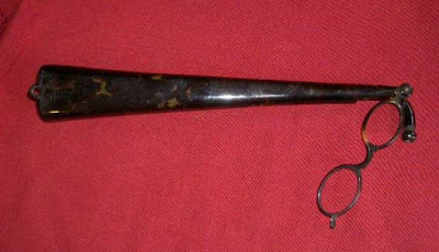 It wasn't until the 18th century that lorgnettes were invented, when eye glasses truly became a true fashion statement for women of all ages. Lorgnettes were born from scissor spectacles and had a single long handle built into them. Those who could afford these hand-held designs eagerly purchased them to avoid having glasses on their faces. In 1830, a French manufacturer designed a hinged bridge with a spring, which allowed the eyeglasses to be folded. Lorgnettes became so popular during the mid to late 1800s that manufacturers placed them into all manner of objects including mechanical pencils, fans, and ear trumpets. Ladies preferred these to the horrid looking spectacles they had to wear on their faces.