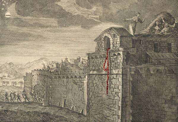 The decrepit city walls tumbled, people scurried about in terror, and the slaughter began. No human or animal escaped the blood lust, except for Rahab and her family. The red cord that hung from her window saved their lives. Rahab and her family safely entered the Hebrew camp. Rahab remained, living among them, and converted to the Hebrew religion and became a loyal follower of God.