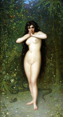 Created from Adam's rib to be his partner and help populate the world, Eve was curious and naieve. When the devil appears in the form of a serpent and he tempts her to eat from the forbidden fruit of the tree of knowledge so that it would improve her and that she would not die, she ultimately succumbs.