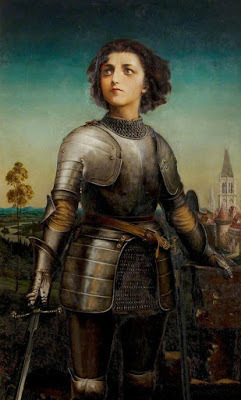 From the tender age of thirteen, she heard voices from Heaven that clearly assured her that she had been chosen to convince King Charles VII, who lacked confidence, that he could oust the English from the city of Orleans with her help. Not only was she to gain the King's confidence, but she was the one to lead the battle.