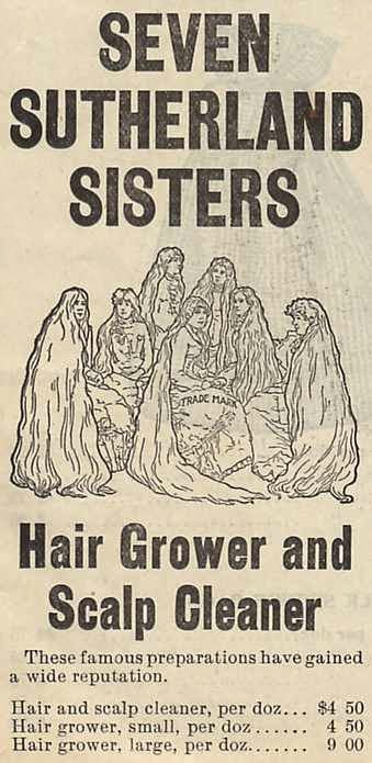As a means of pulling his family out of poverty, their father, Reverend Fletcher Sutherland, tried to get them into theatres as singers. But it wasn't their parlor songs and ballads that gained them fame, it was their hair. The grand finale of their act was when they turned their backs to the audience and their father shouted, "Let down your hair."