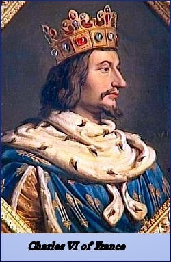 Mental illness ran rampant in the family. In fact, her father, the king, suffered from severe schizophrenia. Desperately ill, he was delusional. At times, he believed he was made of glass and breakable, and fearfully fought off anyone who dared come near him. Other times, he ranted and raved that he had no wife and children, running from chamber to chamber in the castle. Sometimes he believed his enemies were upon him and would be thrashing and fighting off the invisible foes. But King Charles was not the only one in the family who was mad. His mother, Joan of Bourbon was unbalanced and became totally deranged after giving birth to her seventh child. Her father, uncles, and grandfather also suffered mental maladies.