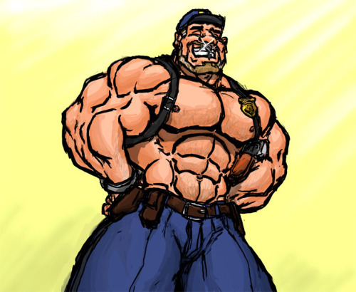 I don’t usually go for cops, as much as they’re a stereotypical fantasy for tons of gay guys. Frankly, IMHO they wear too dang much. The whole fireman/construction worker/bouncer etc etc works for me because the outfit is usually recognizeable when stripped down a bit, but without the hat and shirt, it kinda becomes a guy in dark pants and a belt. But this time I kept a few elements of the outfit on, especially the parts that emphasized his chest.