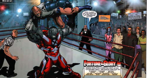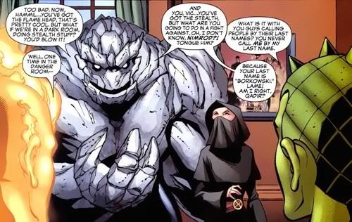 Nice feet placement, Kurt. (they do not actually fight Wolverine...