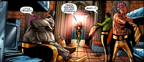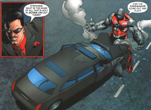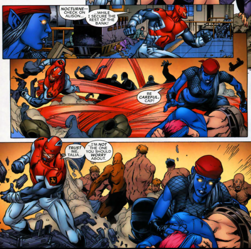 I want to say it was the first issue (or close to it) of Exaclibur’s revival somewhere in the early 2000′s. Back when the team lineup was Captain Excalibur, Nightcrawler’s cool daughter from Exiles, Dazzler, Juggernaut, Sage, and Pete Wisdom.