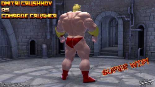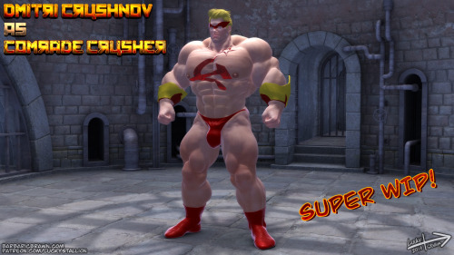 The blond guy above is a new Soviet hero/villain whose secret identity is Dmitri Crushnov. When in costume, he’s Comrade Crusher (many thanks to @marauder2506 for coming up with the hero name!), defender of Mother Russia against the decadent western dogs!