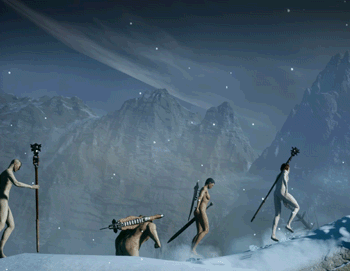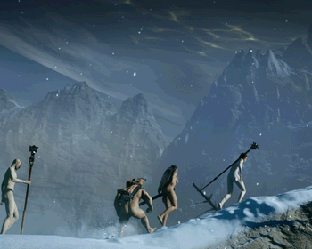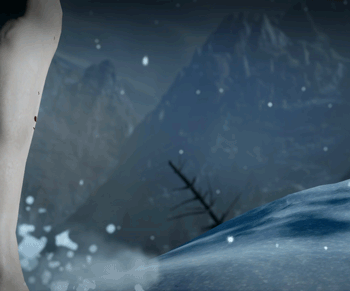 Cassandra struggling in the snow ‘cause the shield and the sword are 10000 times larger than her.