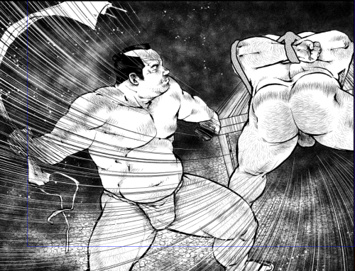 さらにチマチマ進めて、このあとフォトショで下地の紙テクスチャ重ね、クリスタでグレー影を乗せるのだ。スパンキング!!