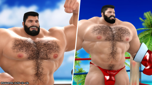 Also is a set of fan art of Bluto, the big stud bully from the old Popeye cartoons. I have him here in his Navy costume and as a thong-clad boxer! Both smooth and fuzzy-chested versions are included in this set.