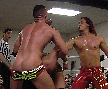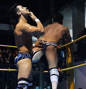 Garza Jr gets pantsed and spanked by Daga….then returns the favor with a spank…very hot!