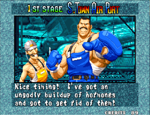 - Franco Bash to Andy Bogard pre-fight, Fatal Fury 3: Road to Final Victory (SNK)