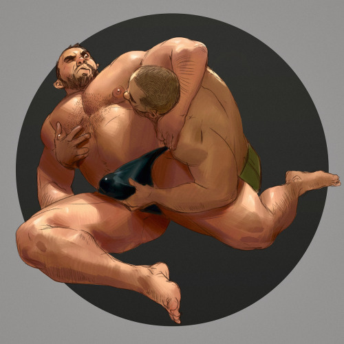 From Captaindemetrios:  seems like strongman in a circus to me. maybe clowns or tigers take advantage of this vulnerable position?