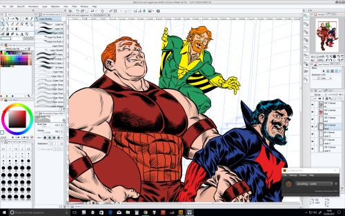 While sketching a commission, sketching Porky pages, i try to work on the colors of this Juggernaut/Black Tom (with Banshee on the background) fanart…