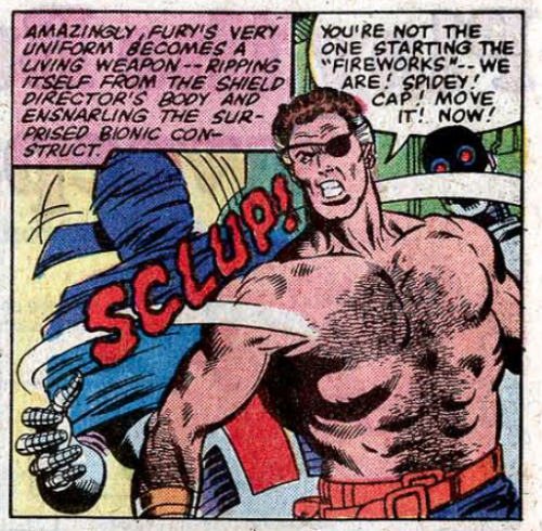 Today is the day I discovered that Nick Fury’s uniform has a weaponized strip tease function.
