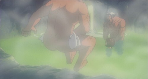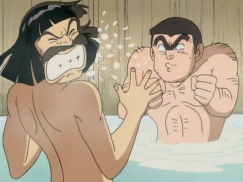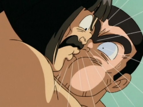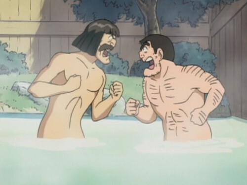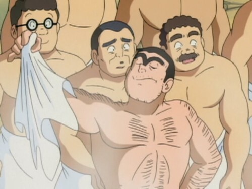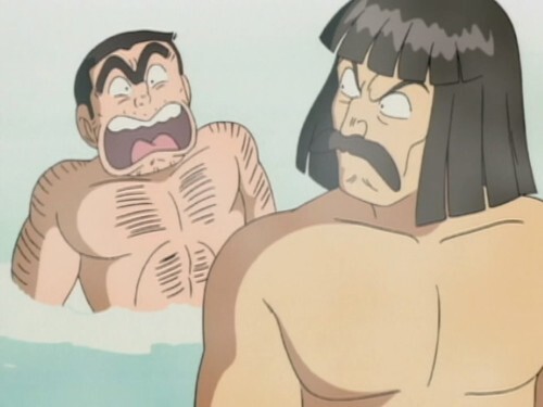 Kochikame episode 291, part 2. The dispute is settled in classic anime fashion, with full on man-kissing.