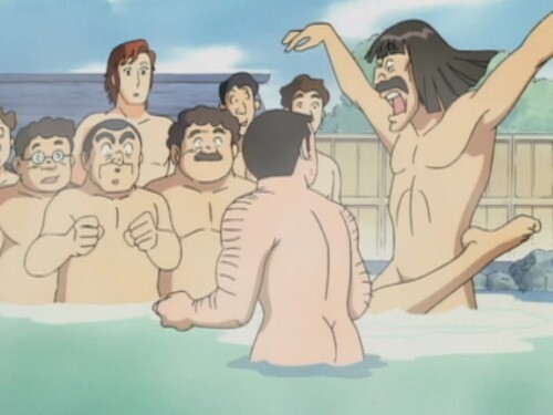 Kochikame episode 291, part 1. A case of mistaken identity leads to a hot spring rumble!