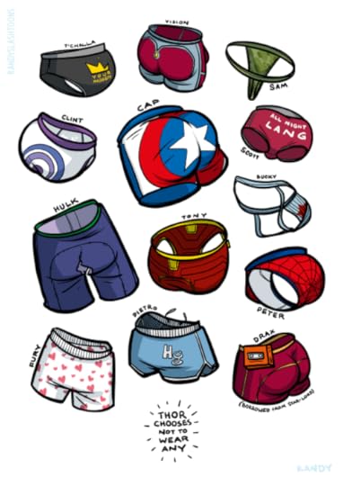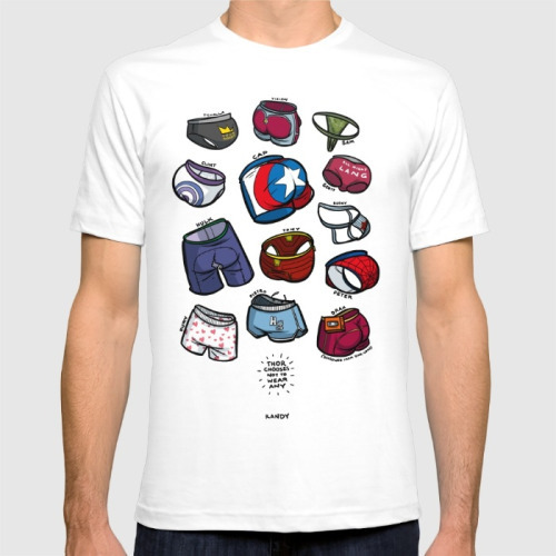 Prints, t-shirts, mugs and other stuff with the Avengers’ undies in my Society6 shop!