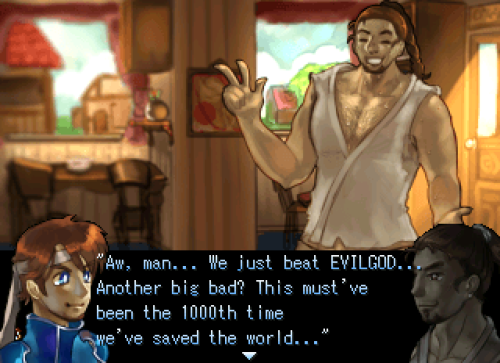 I’m working on a yet unnamed bara comedy RPG series, starring the cast of RPG Maker in meta-parody!
