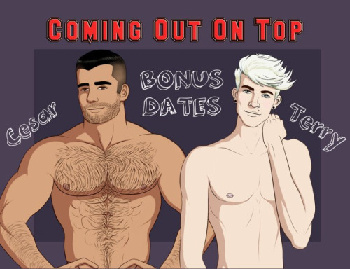 The next two bonus dates, Cesar and Terry, are now available for Coming Out On Top! Just like all the previous additional content, these guys are both absolutely free with the initial purchase of the game. As of now there’s six main routes, a gag route, and six bonus stand-alone dates, with four more coming! If you haven’t checked the game out yet, I definitely urge you to give it a shot. (And Obscura, the creator, is incredibly awesome, so send her some thanks too!)