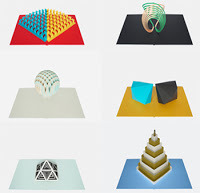 In my latest Movable Stationary [Vol 20, No. 1, 02/12], newsletter from the Movable Book Society, there's a column called Poppits filled with interesting information plucked by Ellen Rubin - The Popup Lady - from around the paper engineering world. One of the items was subtitled "New Artists' Books" and I was intrigued.Tauba Auerbach, an artist, published in conjunction with Printed Matter, a 6 volume set titled [2,3] that are signed and numbered [only 1000 were printed] and it is sold out!