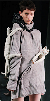 Spanish designer, Miguel Adrover, showed for F/W 2012 in New York during fashion week a knit dress a cat lover would love to don. The naughty feline on her hip, pulling it up, is a good touch.