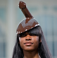 I love fashion and get a kick out of when a designer steps out of the box, but I have my limits, and this one - this hat - is a no way! Even if it does look like chocolate, which I love, this hat would never find a place on my head.