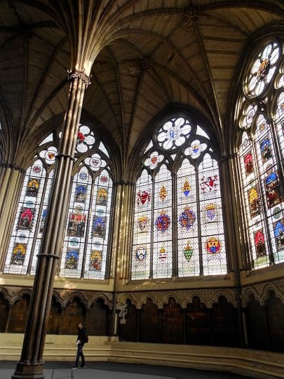 I will say, this trip was easier than I expected -- and Westminster Abbey did not disappoint, as these windows in a nave show -- but it also messed with me. The flight was an hour late getting away from the gate, then waiting another hour on the tarmac to take off because JFK's shut down one of its runways for improvements. We got dinner at midnight.