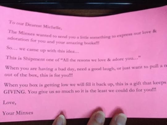It was beautifully wrapped and now I wish I'd snapped a picture of it before I undid it:( But I'm a goober like that. Dang it! Anyway, there was a note inside and this is what it said.