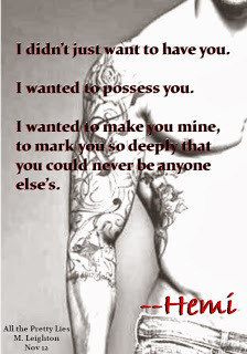 I finished this one. But that doesn't seem to matter. I can't get Hemi and Sloane out of my head. And I'm dying to introduce them to you!! OMG