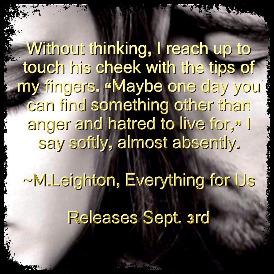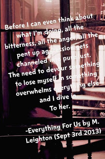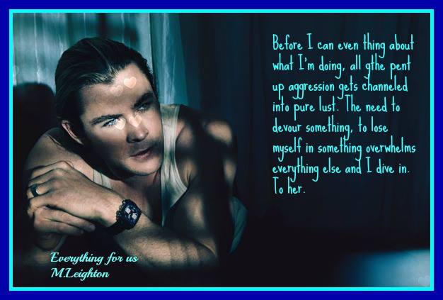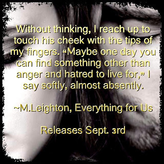 This is the last glimpse into Everything for Us before it releases tomorrow. The excerpt comes along with a song that fits the position Marissa finds herself in when it comes to this strong, sexy man. She knows, without a doubt, that he's bad for her, but she can't stay away. And part of her doesn't want to. Something in her wants to get as close as she can to the flame. Every time I hear this song, I think of how she feels, and why. It's times like the one below that I think I, too, would have a hard time turning away when it feels so, so right.