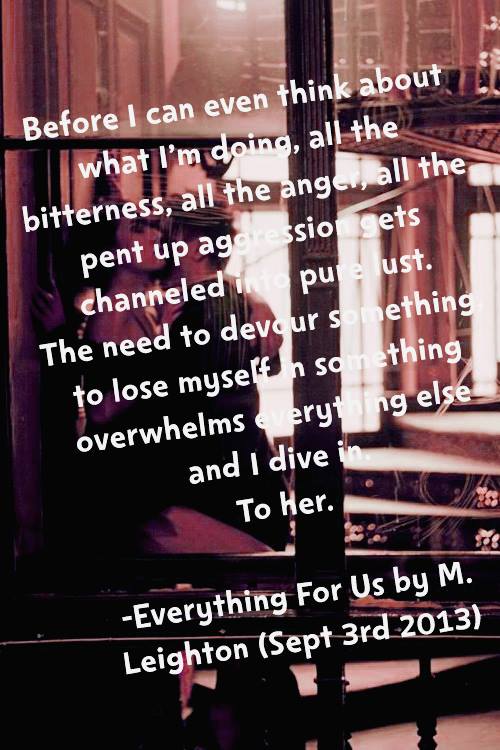 3. I flick my tongue over her, just once, and I inhale. “God, I miss this.” I feel her shudder when I exhale warm, moist air on her. --Wild Child by M. Leighton. Oct 22, 2013